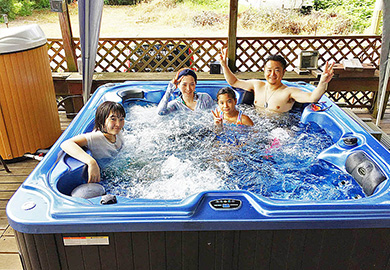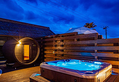 屋外の絶景を家族と楽しむアウトドアリビング。温浴効果、マッサージ、照明で究極の癒やしを演出します。